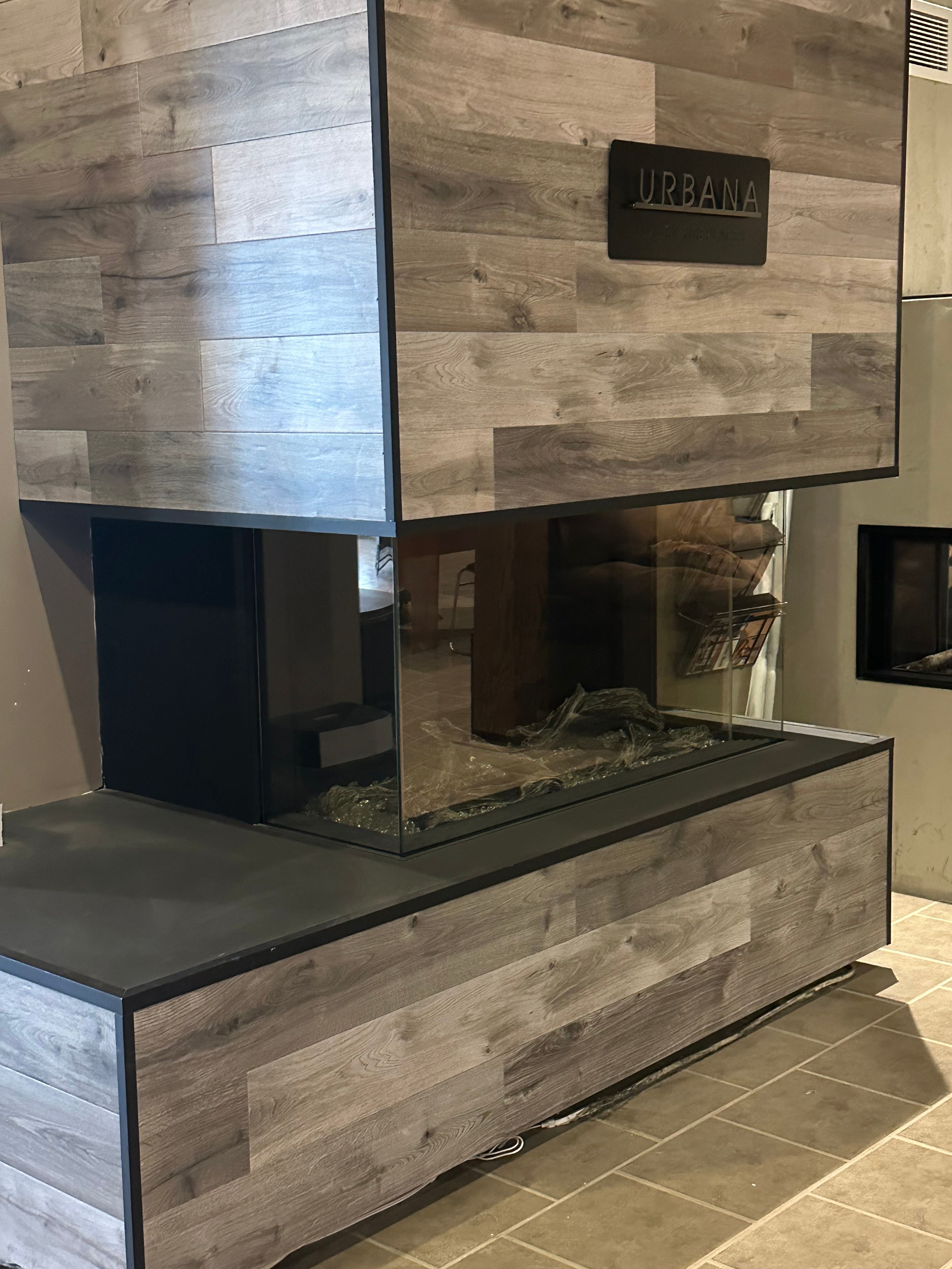 Foyer au gaz 3 faces (Cool Touch) de 38 000 BTU. Inclus télécommande, bûches de bois de grève et panneaux de verre réfléchissant.