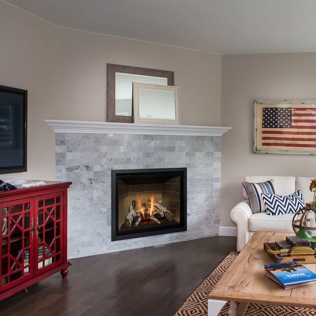 Foyer au gaz à évacuation directe livré dans un ensemble de bûches