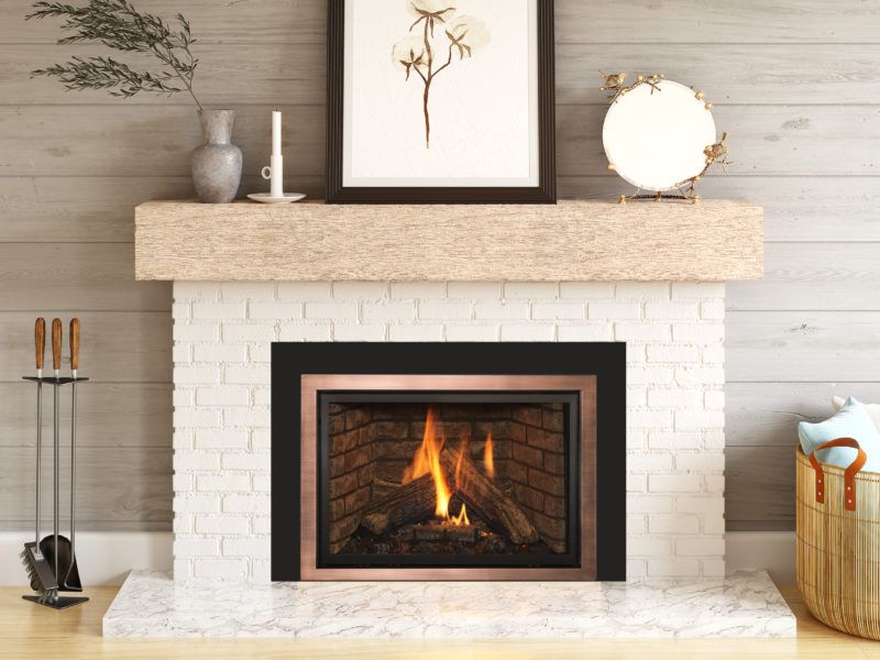 A realistic burning gas fireplace insert using EVO Elevator burner technology.